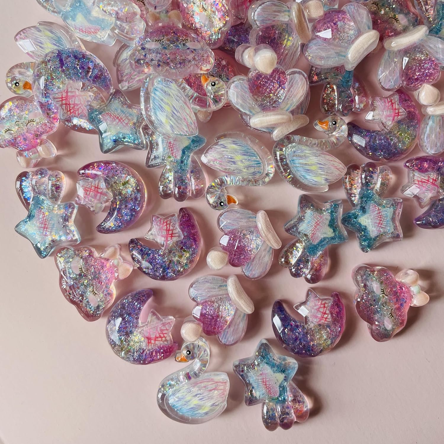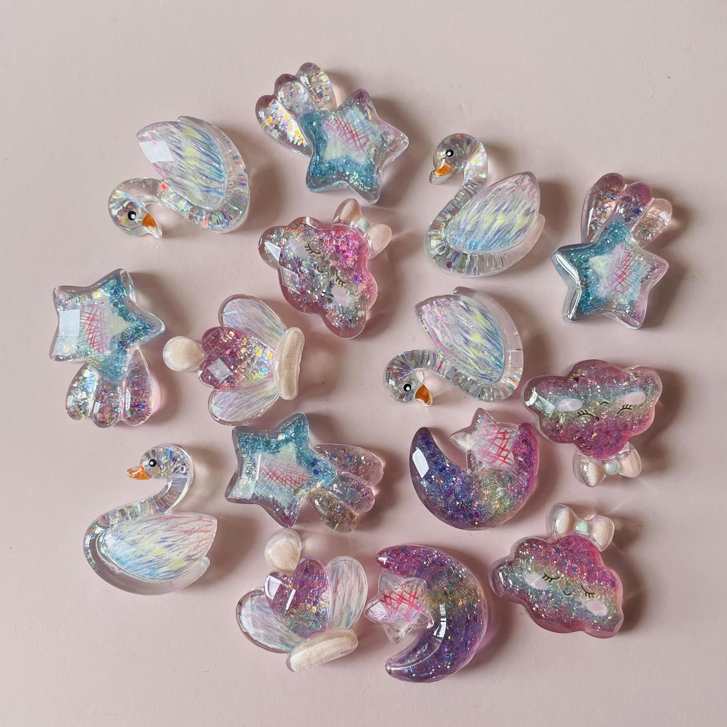 - Handicrafts: The resin embellishments can be widely adopted in decorating your afternoon tea, cake, DIY hair band, hairpins, photo frames, vases, cards, buttons, jewelry, glass, mirror, phone case and so on.