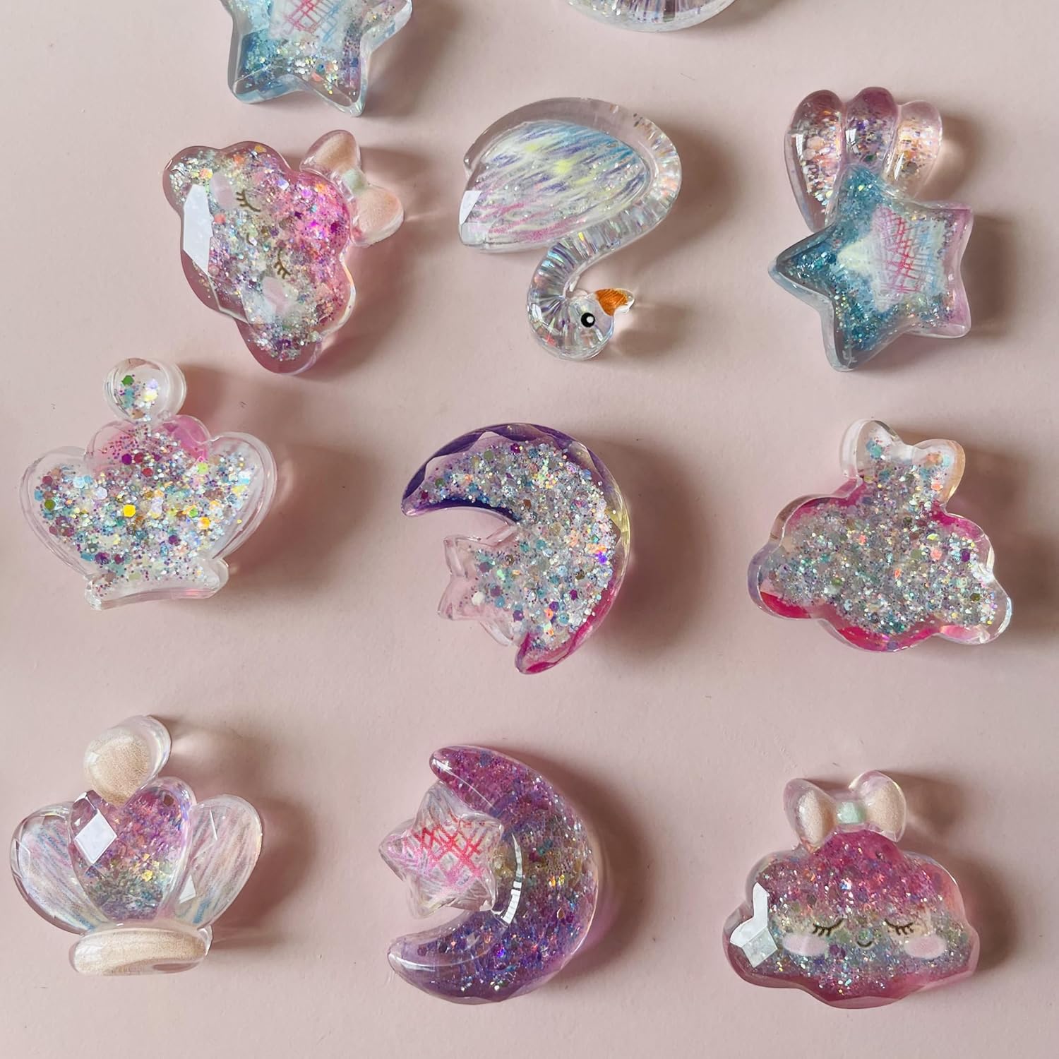 - Shine Style: These embellishments are designed into shine style, include swag, crown, cloud, star and moon styles, the sweety slime charms can bring you much more fun and surprise to daily life.