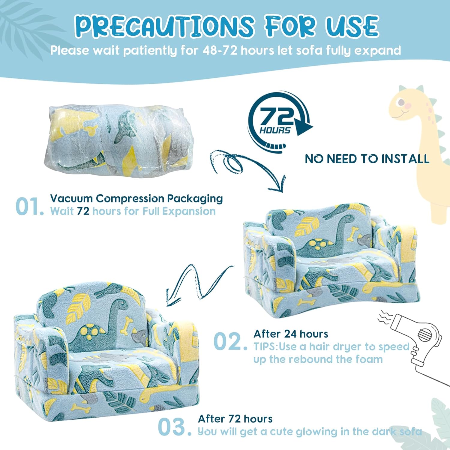 Magical Glow-In-The-Dark Just expose kids couch to a bright light source or sunlight more than 20 minutes |