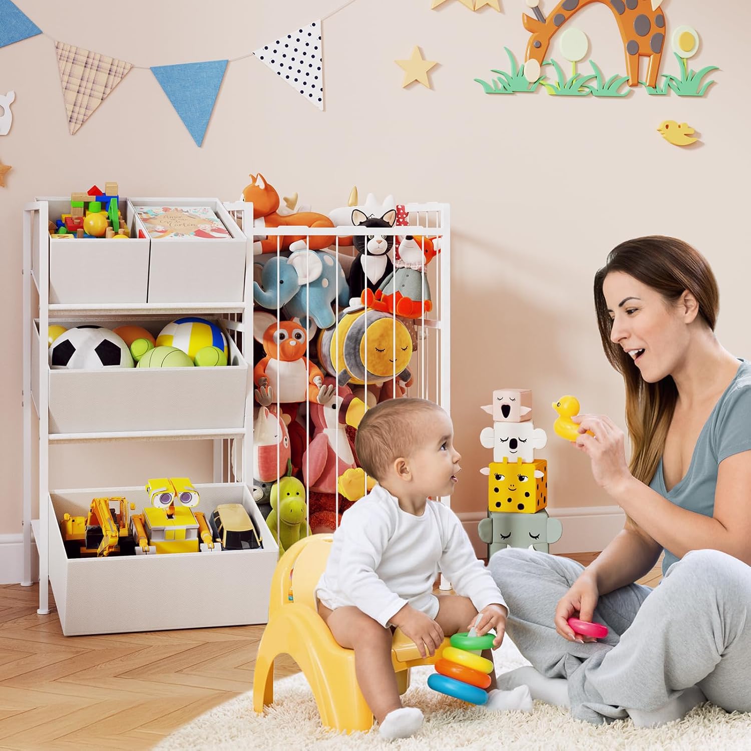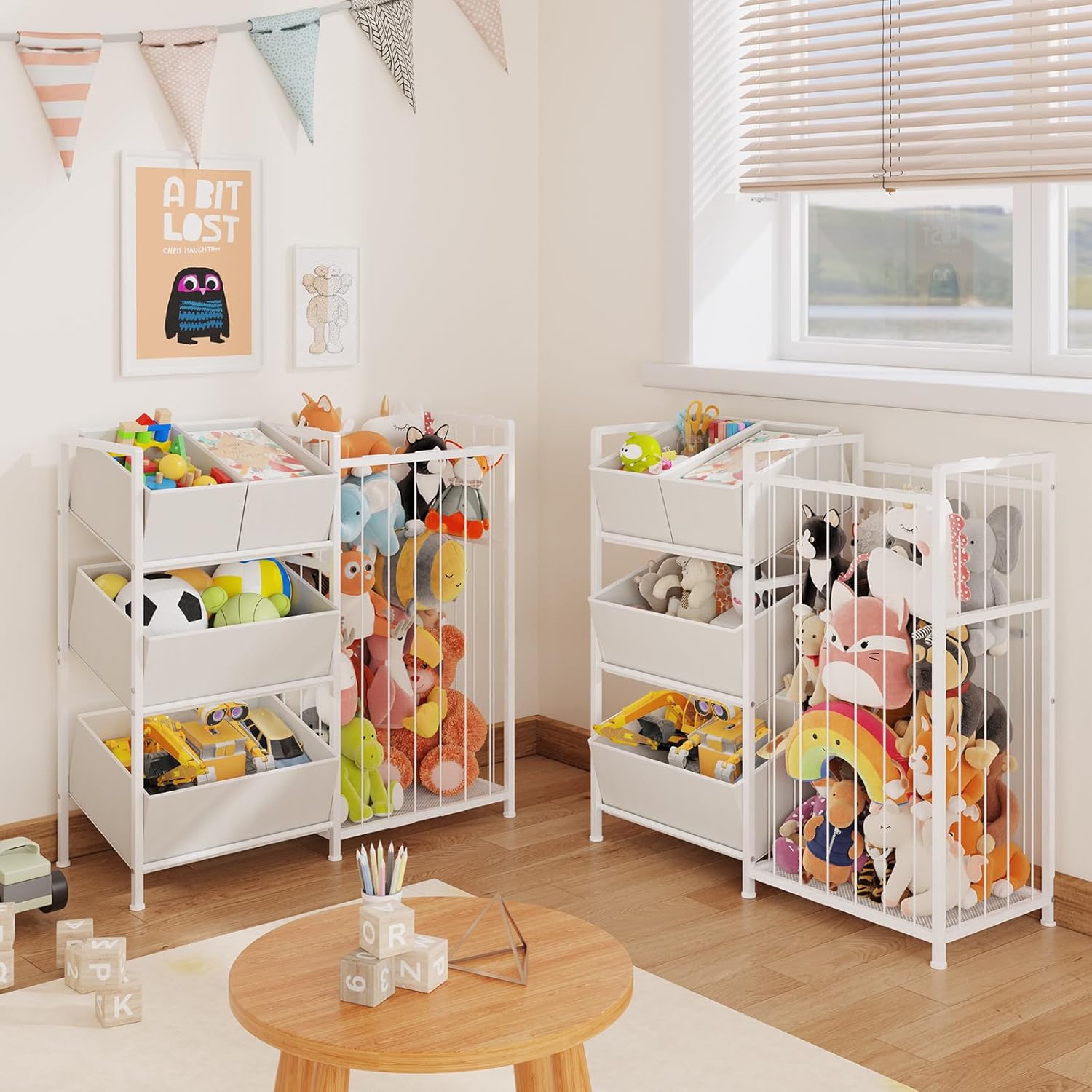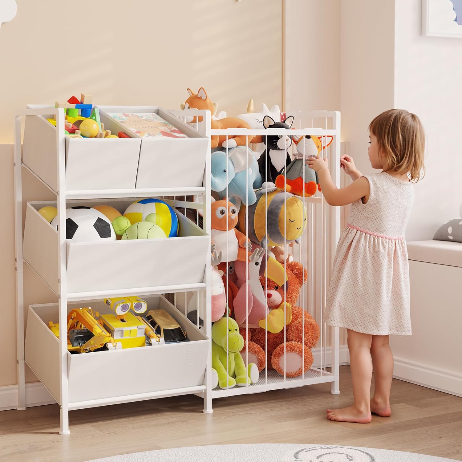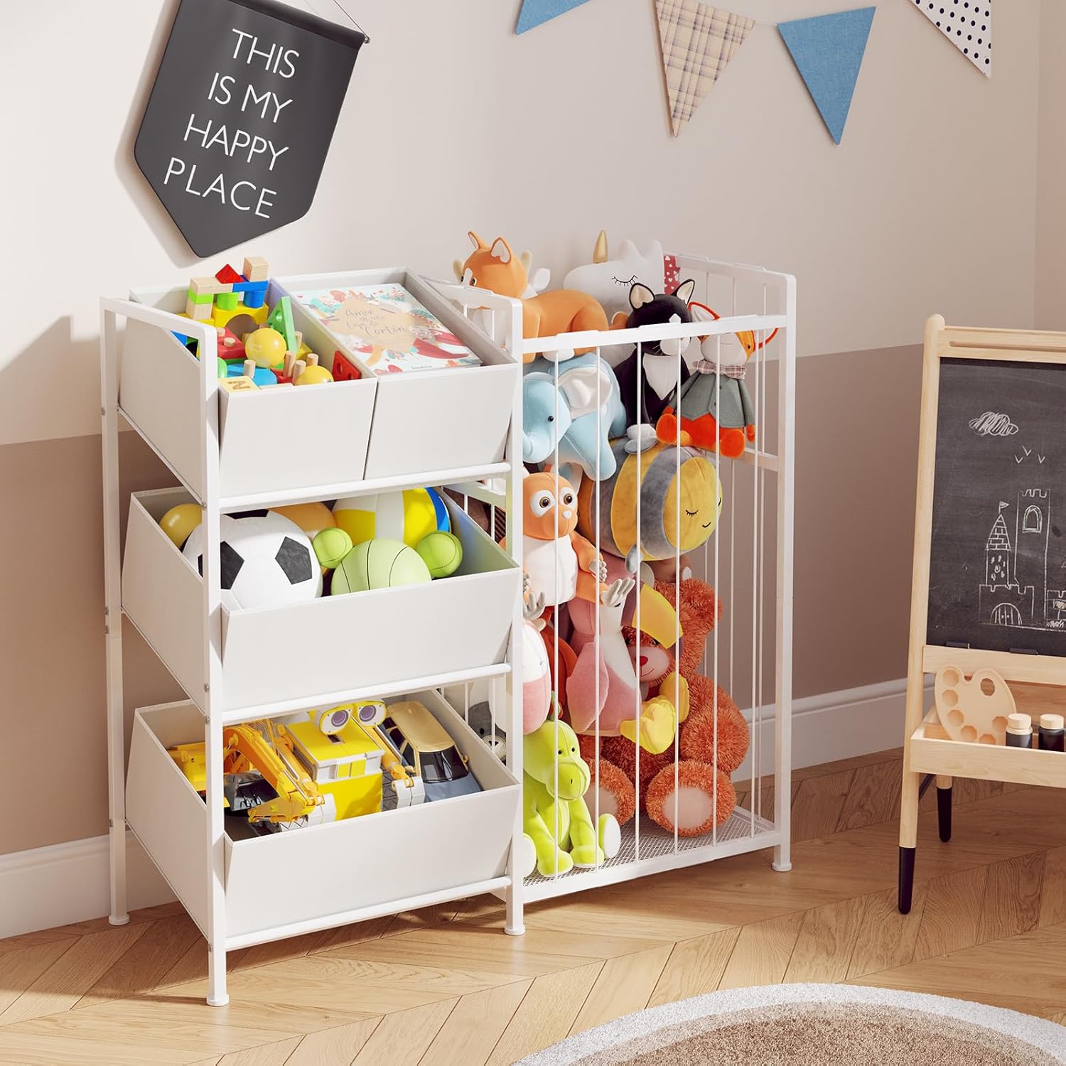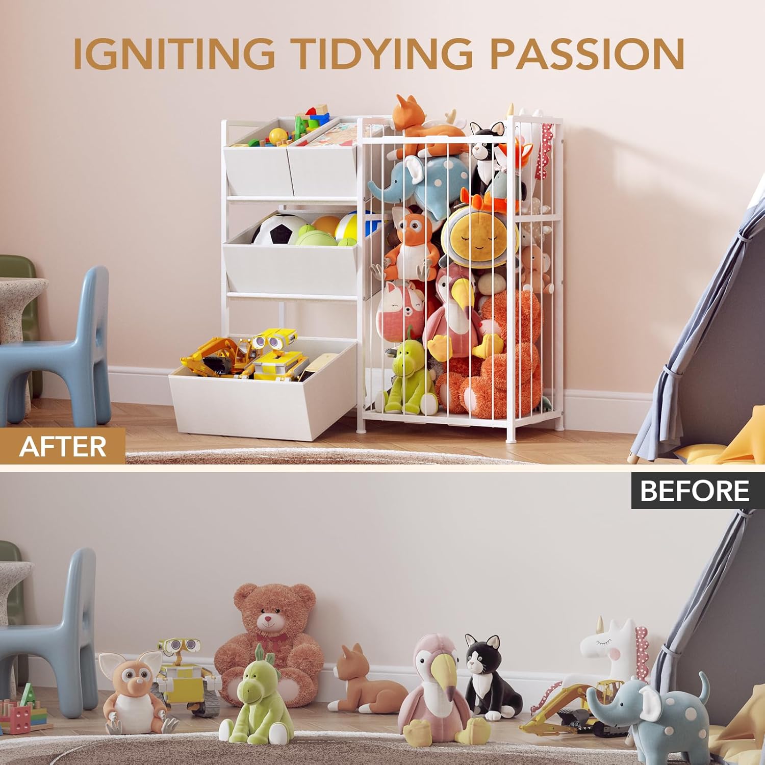 BBLIKE 3in1 Stuffed Animal Storage Organizer – Toy Storage with Kids Bookshelf & Large Plushies Holder for Kids Room – Multi-Functional Furniture for Nursery, Bedroom, and Playroom, White