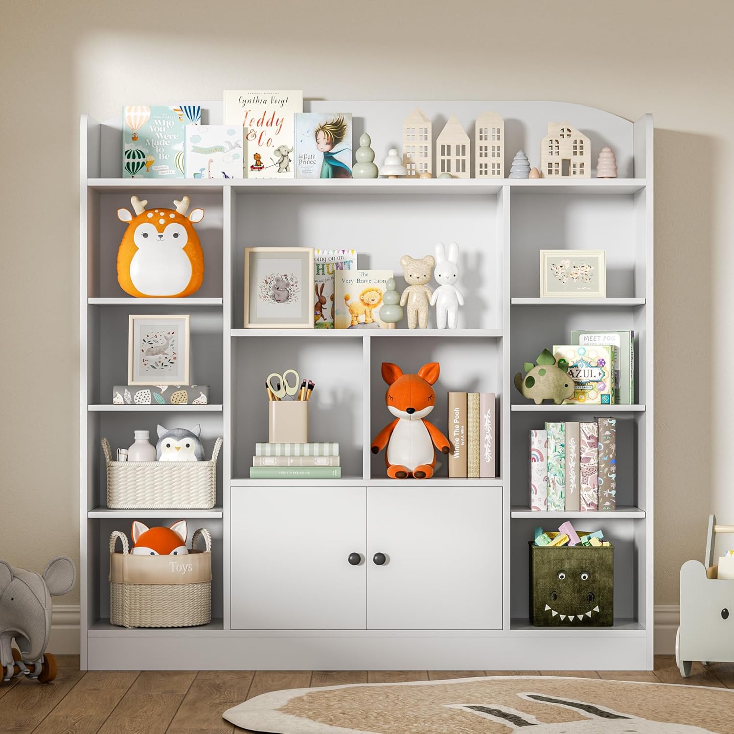 DIYART Kids Bookcase with 11 Cubbies and 2 Cabinets