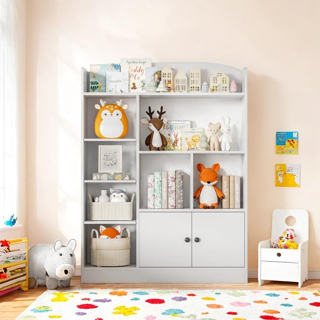 DIYART Kids Bookcase with 7 Cubbies and 2 Cabinets