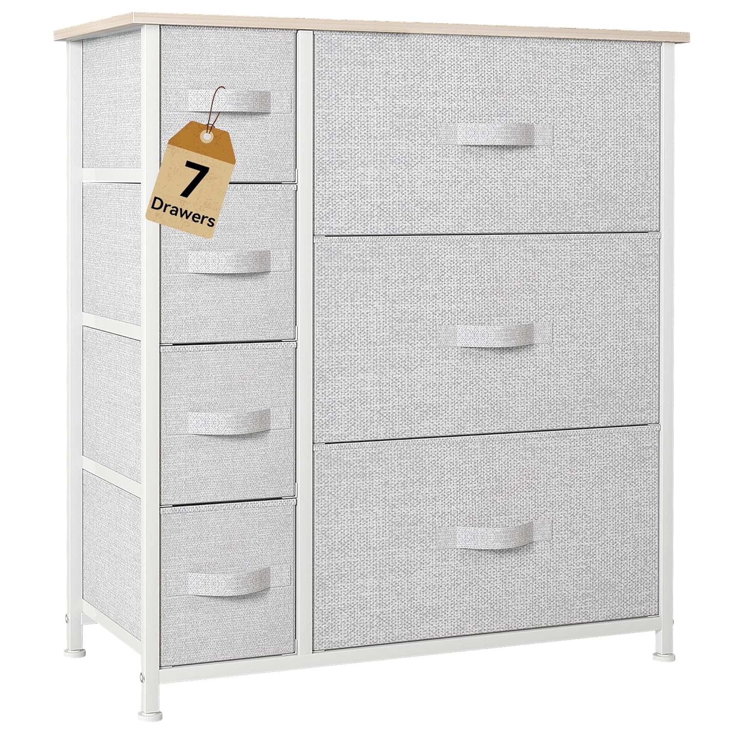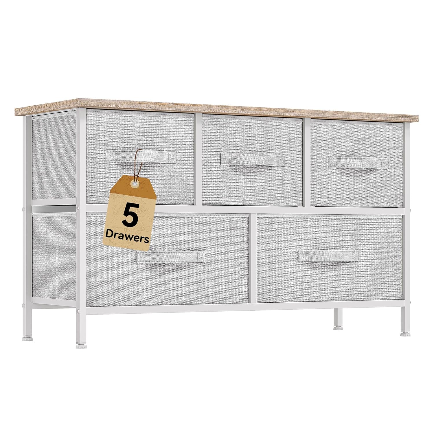 Nicehill White Dresser for Bedroom with 5 Drawers, Small Dresser for Kids’ Bedroom, Closet, Wide Chest of Drawers with Fabric Storage Drawers, Wooden Top, Steel Frame, Modern, White