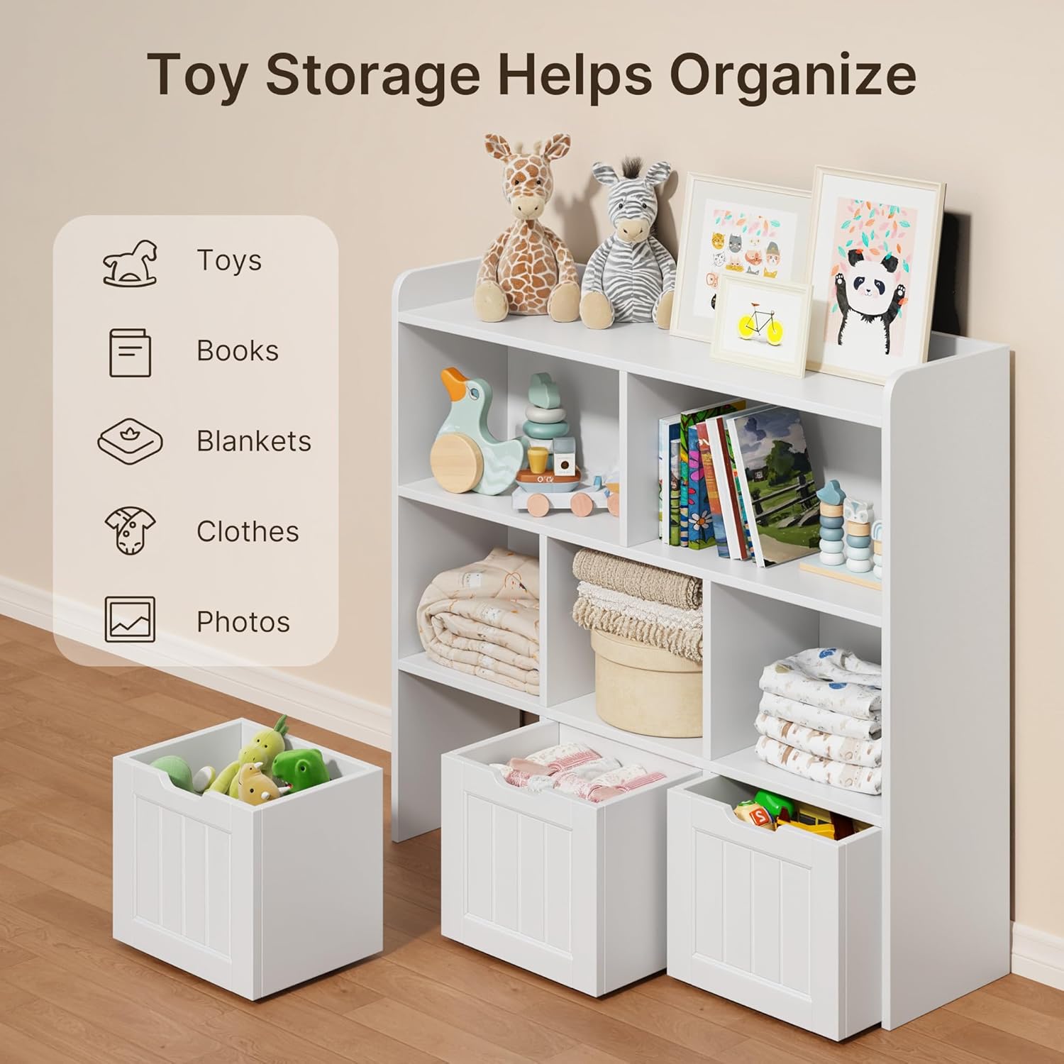 Be the first to review “Gizoon Toy Storage Cabinet and Kids Bookcase with 3 Movable Drawers and 6 Open Shelves Featuring Fall Prevention Barrier for Playroom Nursery Kids Room Organization, White” Cancel reply