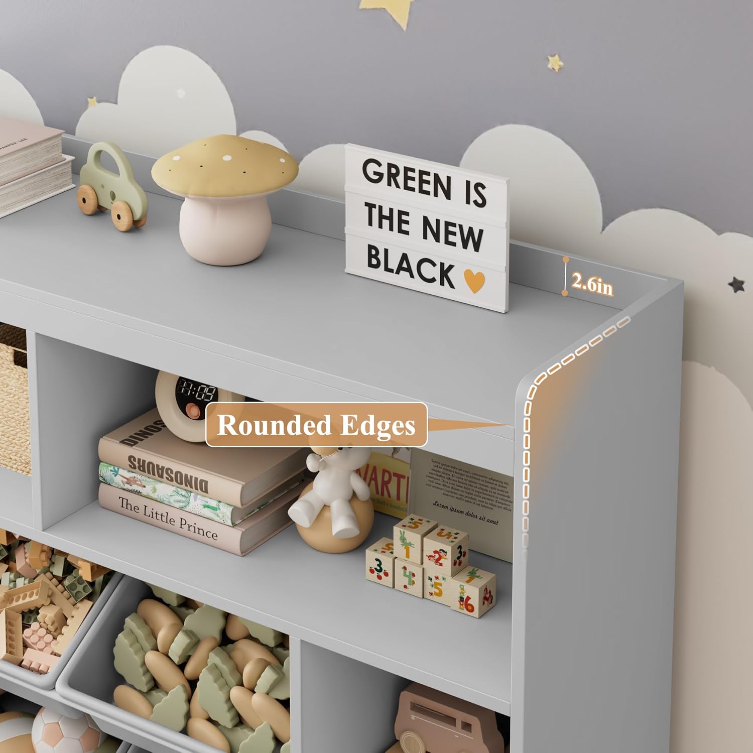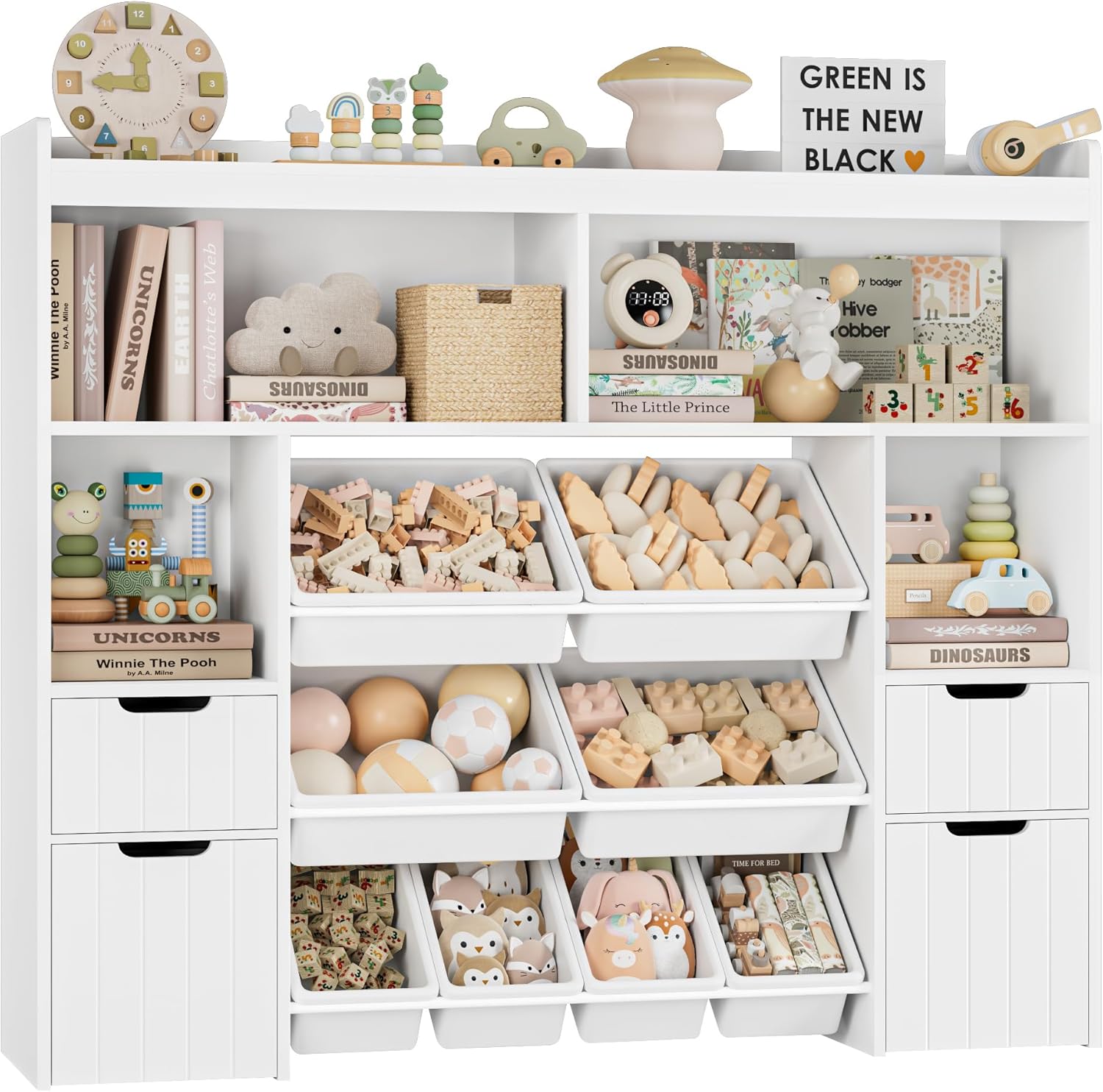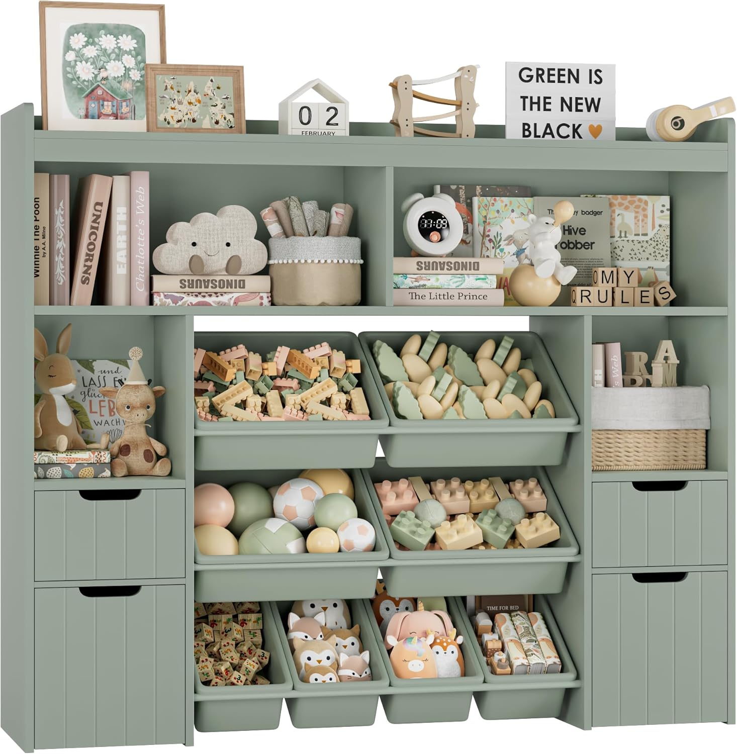 HORSTORS 55″ W Toy Storage Organizer with Drawers, Large Kids Toy Storage Box with Removable Bins, Tall Kids Bookshelf and Bookcase for Boys and Girls, Modern Toy Chest for Playroom, Classroom, Grey