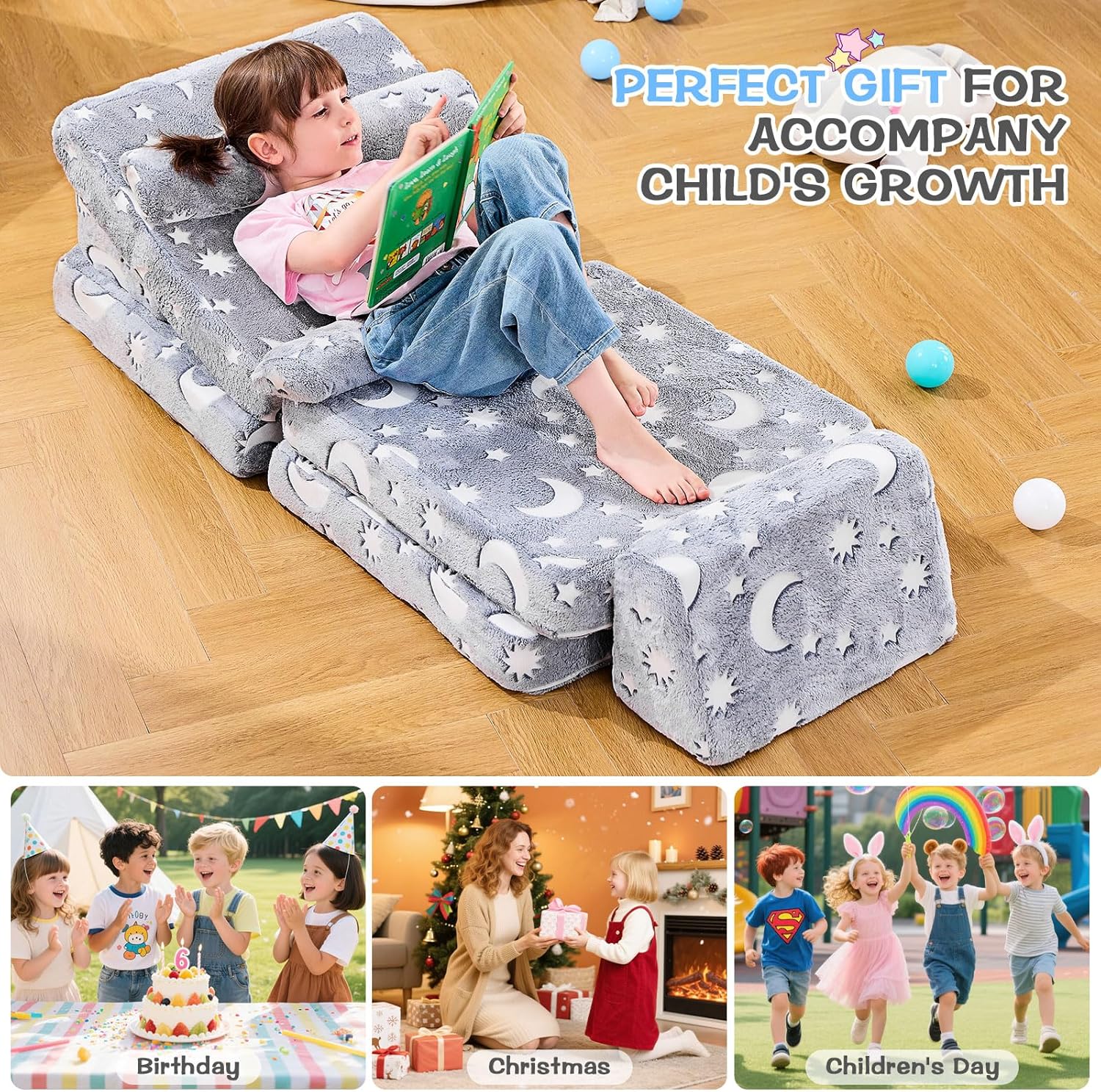IFNOW Modular Kids Play Couch,Toddler Couch Kids Sofa,Child Sectional Sofa,Bedroom and Playroom Furniture for Toddlers,Convertible Foam and Floor Cushion for Boys and Girls,Glow in The Dark,Star