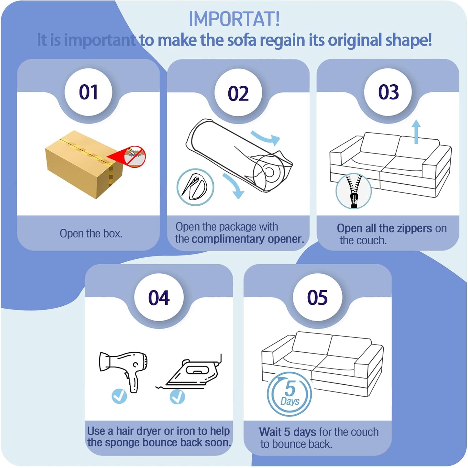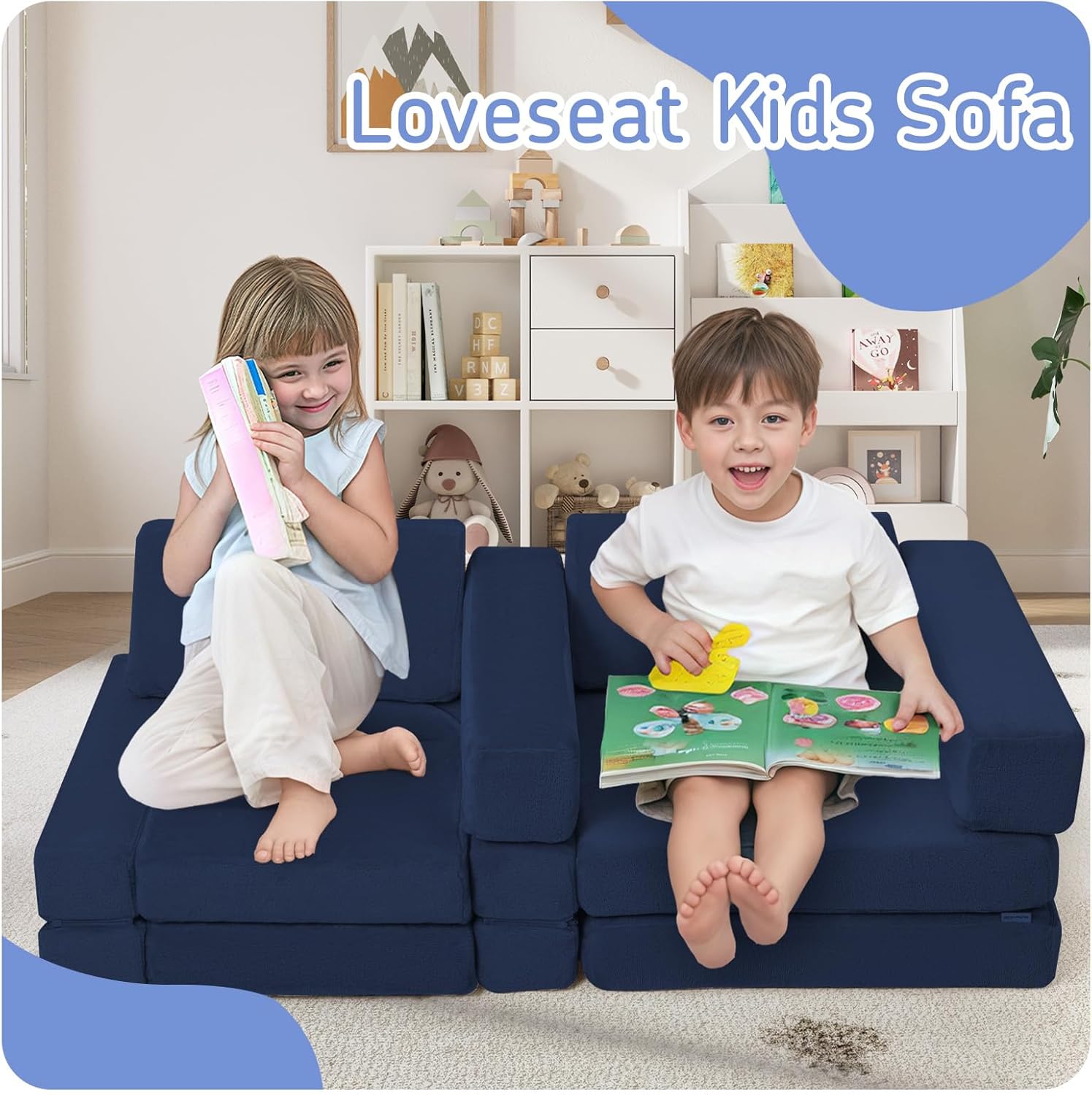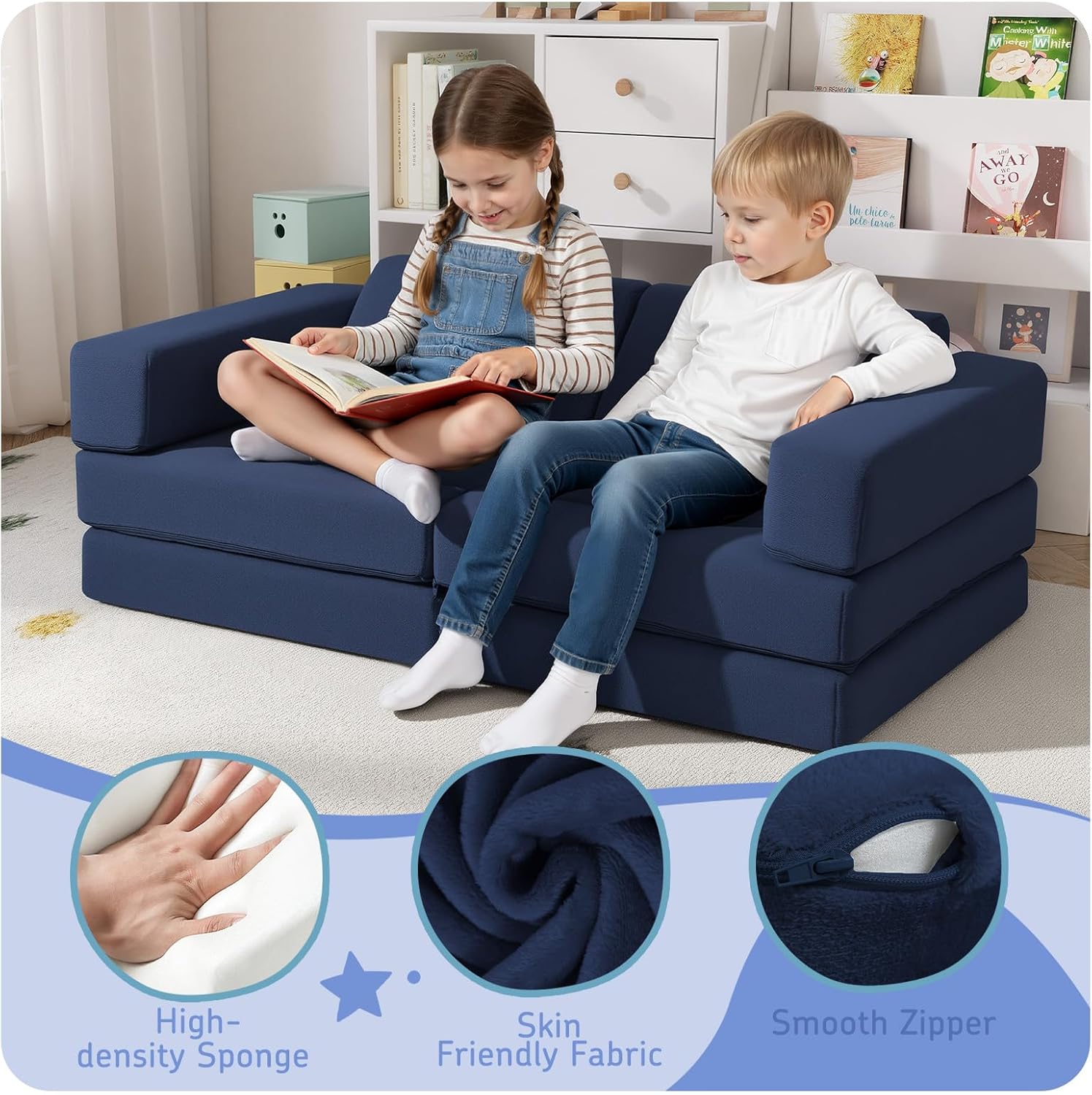 MeMoreCool Modular Kids Sofa, Foam Couch Sofa with Slide & Stair Design, Convertible Kids Couch for Playroom, Sectional Child Furniture for Bedroom Living Room, Navy