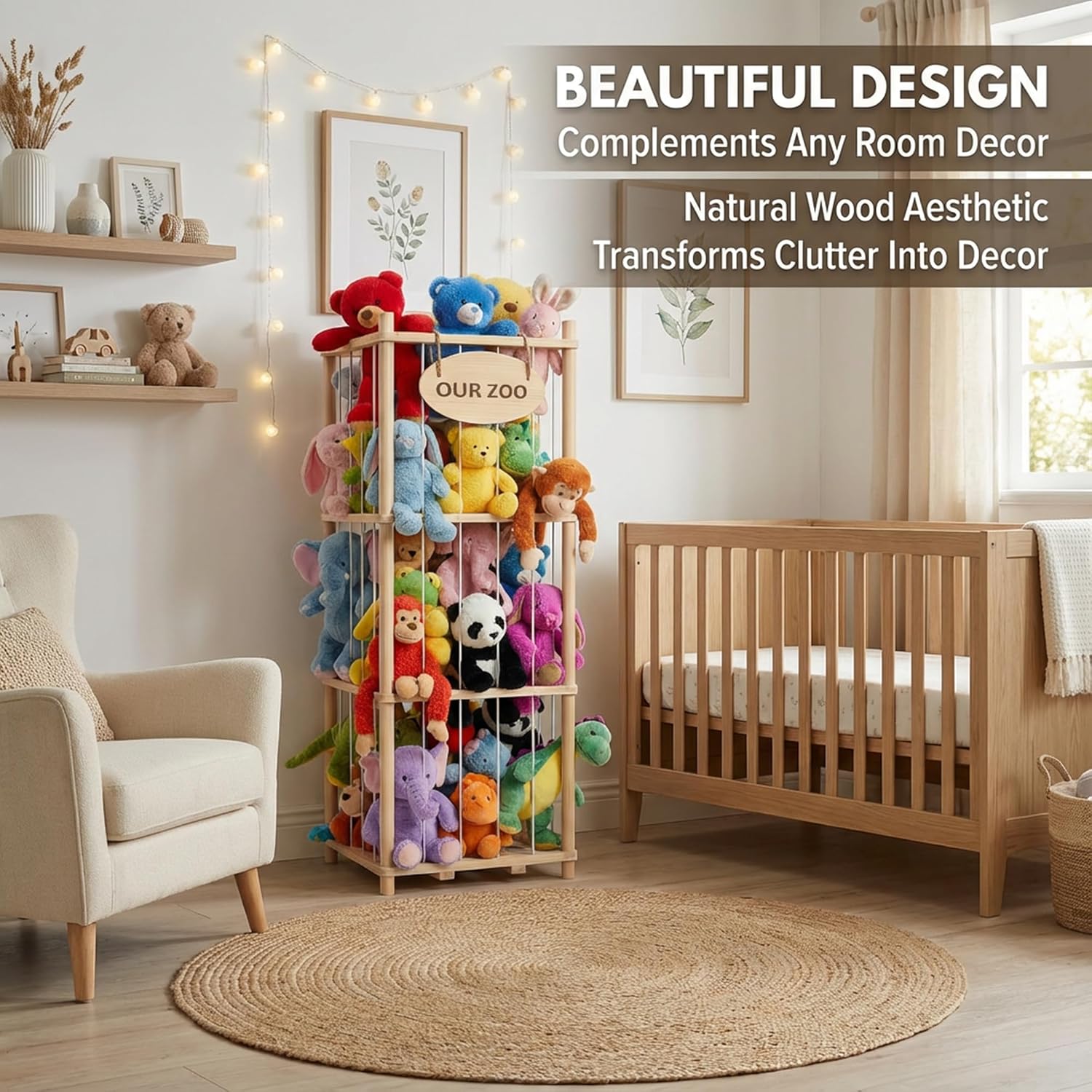 BBLIKE Stuffed Animal Storage – Stuffed Animal Net with Kids Bookshelf and Toy Organizer, 2-Tier White Bookshelf with Stuffed Animal Holder and Fabric Toy Chest for Kids Room, Playroom, Nursery, White