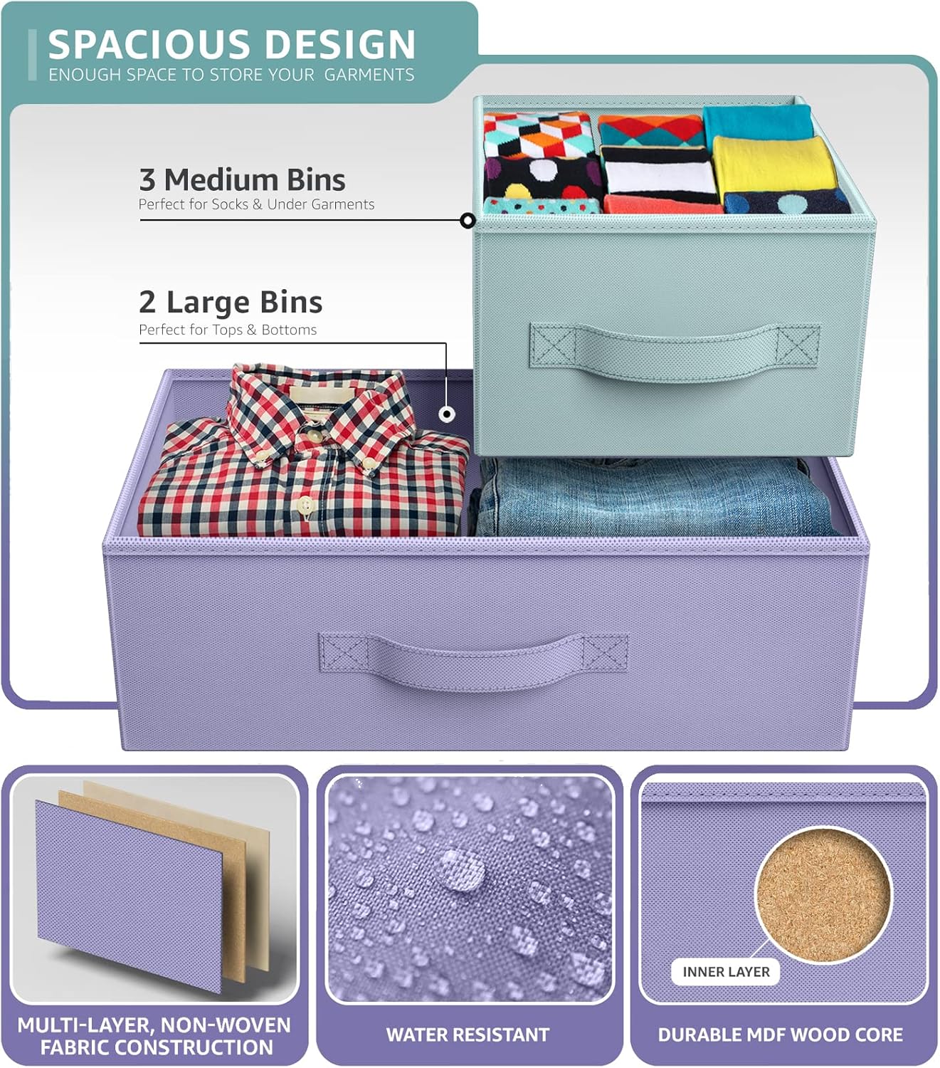 Sorbus Kids Dresser with 5 Drawers – Storage Chest Organizer Unit with Steel Frame, Wood Top, Easy Pull Fabric Bins – Long Wide TV Stand for Bedroom Furniture, Hallway, Closet & Office Organization